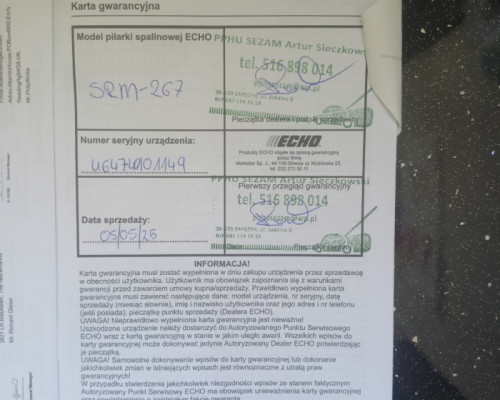 Sprzedam Japońską kosę spalinową echo srm-267 kosa jest lekka i mocna małe spalanie kupiona w tamtym roku jest jeszcze na gwarancji moc 1.2 km w zestawie znajduje się nóż tnący szelki instrukcja obsługi i karta gwarancyjna